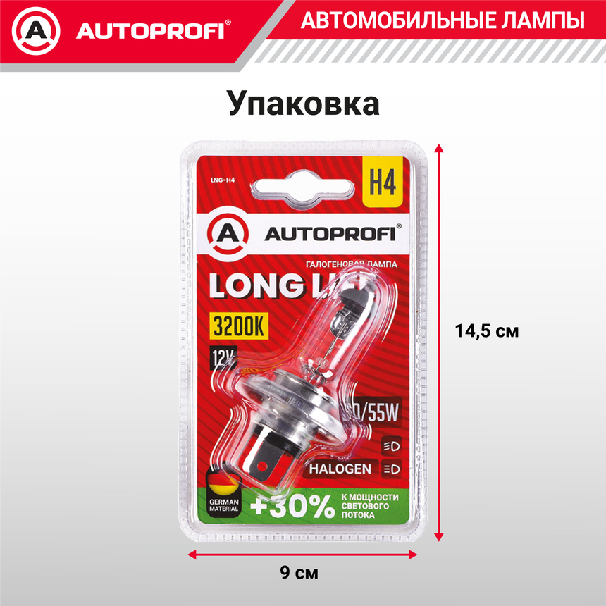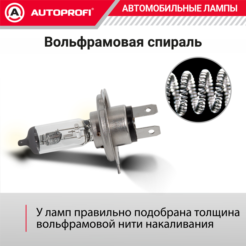 Линейка галогеновых ламп AUTOPROFI LONG LIFE - Галогеновые лампы со световым потоком на 30% мощнее чем у стандартных ламп. Имеют увеличенный более чем в 2 раза рабочий ресурс..